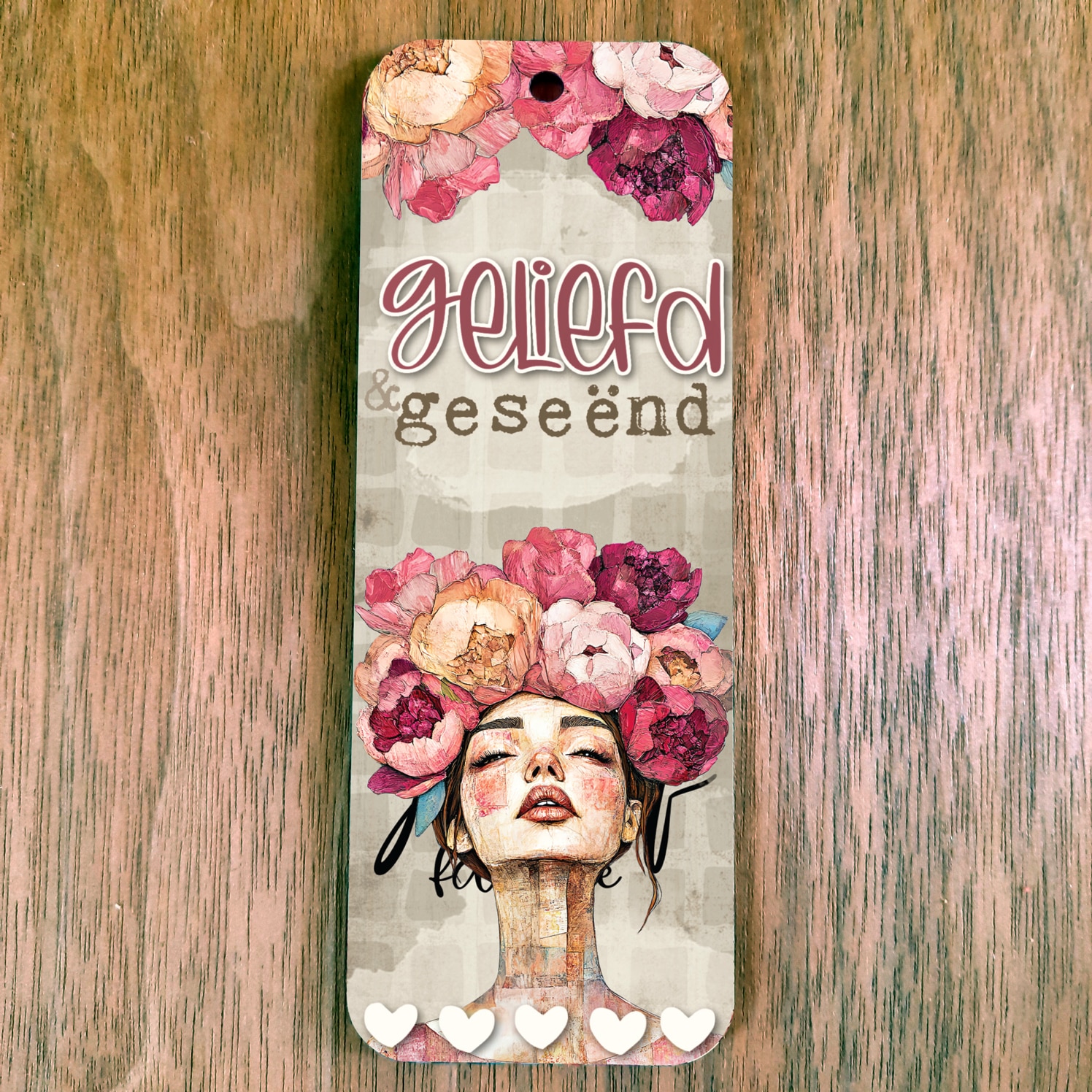 The hole at the top is 4mm and can be used to add a tassel. They are painted dark grey on the back.