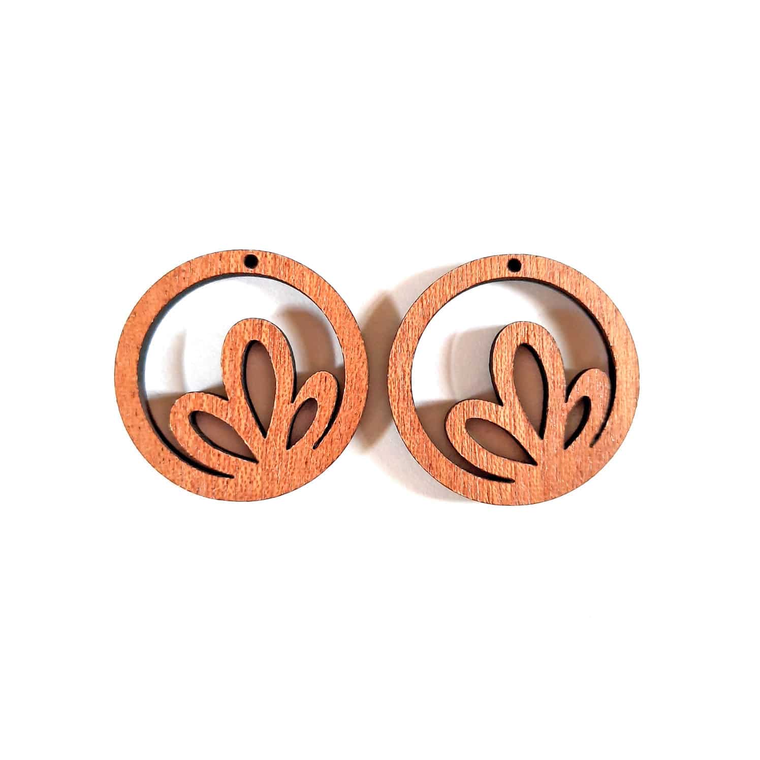 Cutout leaf earrings made from sapele wood veneer. The hole at the top is 1.6mm.