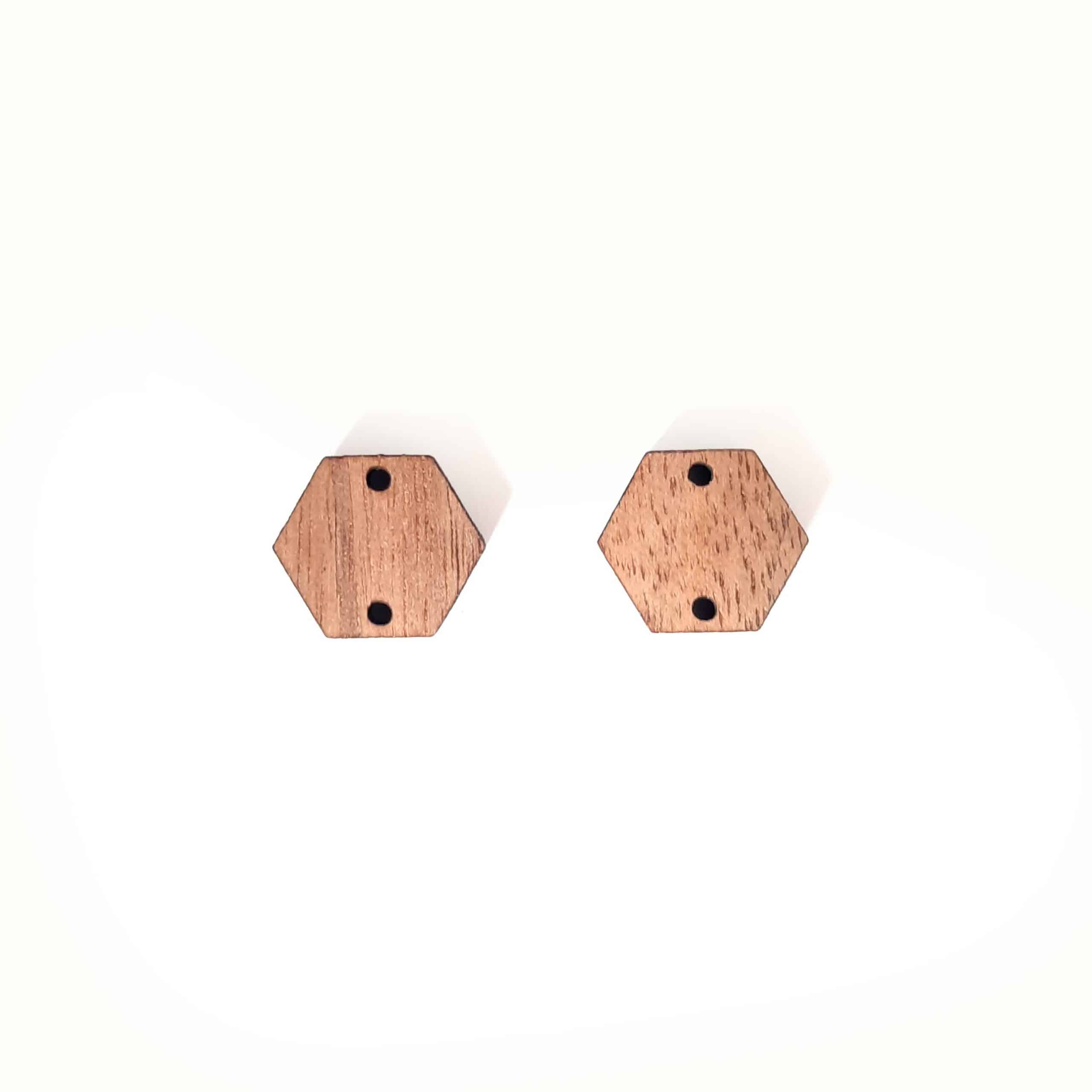 Hexagon walnut wood earring connectors with two holes