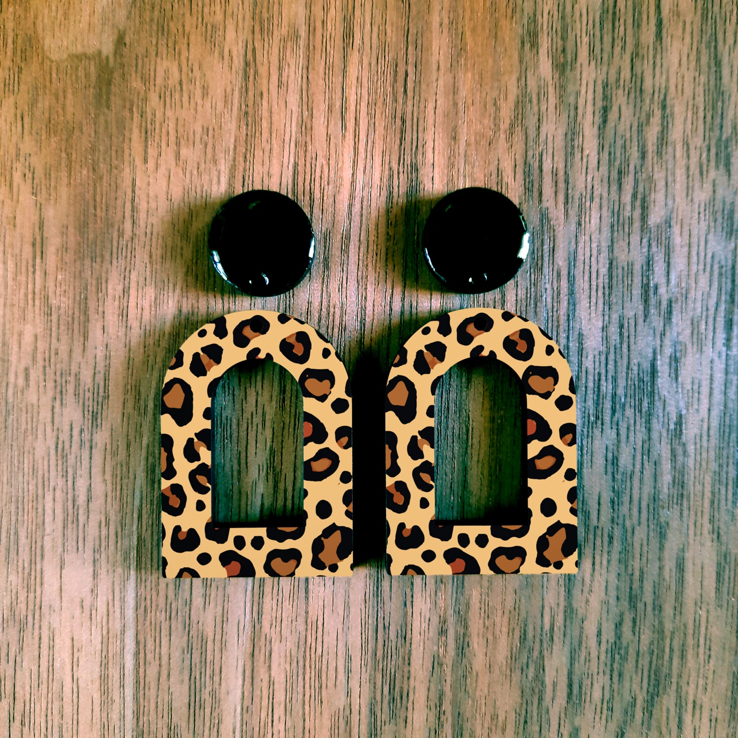 Two-part leopard arch earring set. It comes with black epoxy connectors. It has a 1.8mm hole at the top.