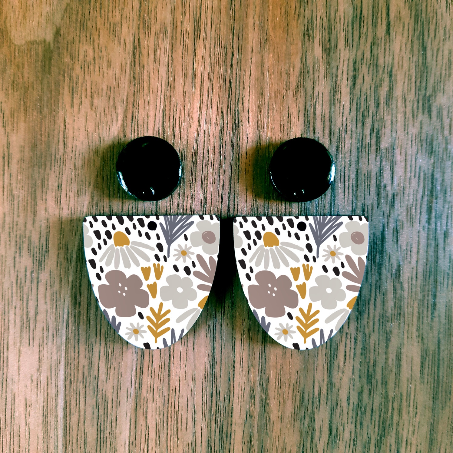Two-Part White Floral With Black Epoxy Connector Earring Set